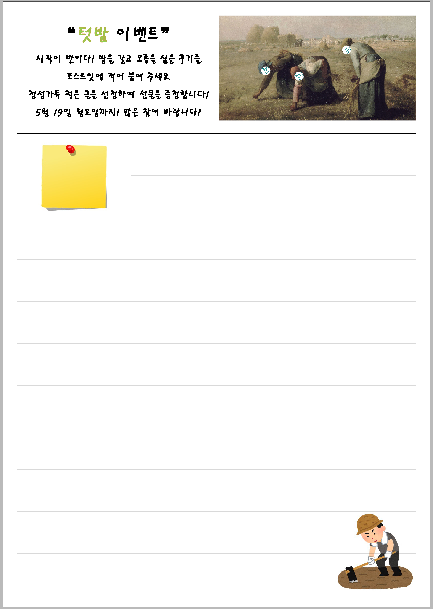 밭을 갈고 모종을 심고 물을 준 후기를 적는 이벤트를 진행.